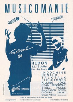 - Concerts annoncés pour le 12 juillet : Les Illuminés Du 8 Dec. / Cyclope / Serge Cabon / Indochine / Stan Ridgway / Killing Joke / Steel Pulse.