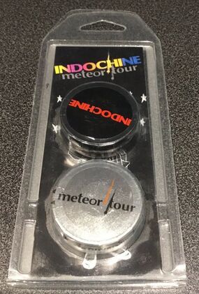 - Vendue par paires. Une boite est noire avec écrit en rouge "Indochine" et l'autre est grise avec écrit en noir "Meteor Tour".