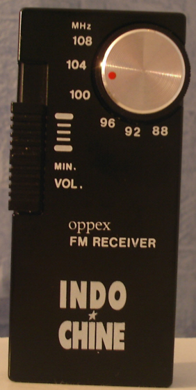 - Mini Radio FM noir avec impression en blanc "Indochine". Ecouteurs et Piles incluses.